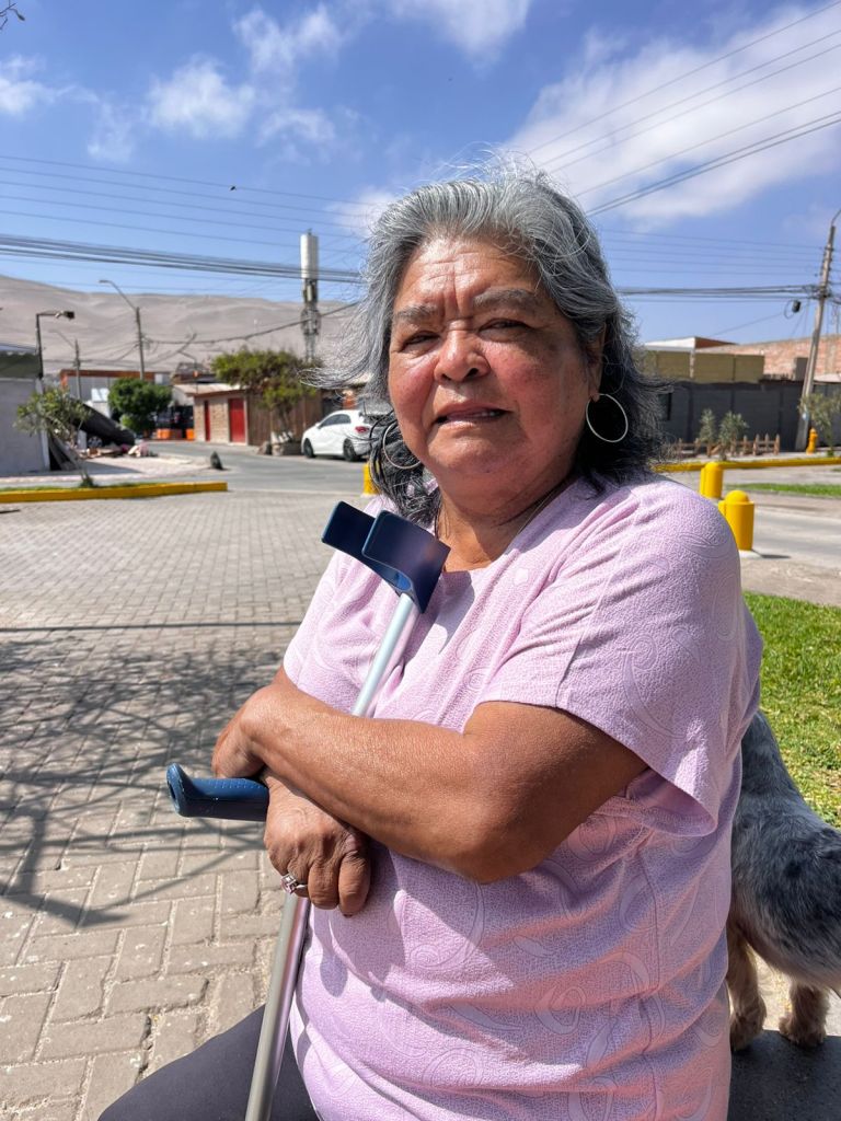 “Para mí es primordial mi marido, él está con sonda, se para y se orina, y ese día no pude evacuarlo, ya que está esperando hace como cinco meses una operación en el Hospital Regional ¿Cómo lo llevo a él con el pato? No se puede. Yo creo que la ciudad no está preparada para un tsunami real, personas con movilidad reducida como yo y él no tuvimos la capacidad para evacuar”